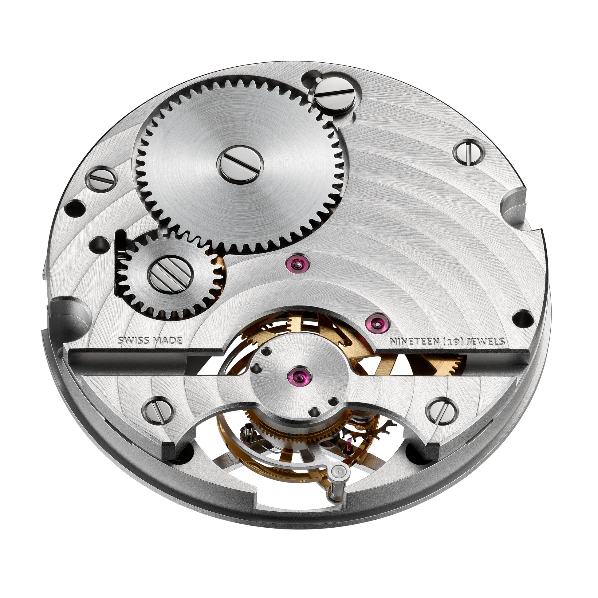 ケースはヴィンテージの懐中時計を反映し、サファイアクリスタルで現代化されており、シルバーの文字盤は微妙なコントラストとレベルによって 1950 年代の魅力を呼び起こします。