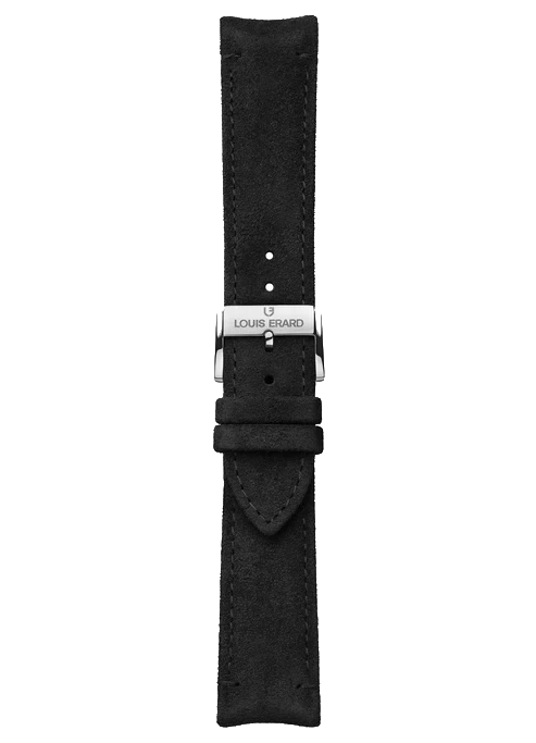 トーン・オン・トーンのステッチが施されたディープブラックのカーフヌバックレザー、ポリッシュ仕上げのステンレススチールのピンバックル、ストラップを素早く交換できる機能的なキャッチスプリングバーを備えており、時計屋を訪ねる必要はありません。