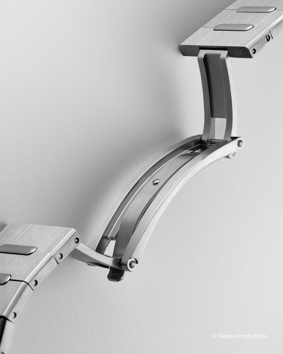 Satin-finished titanium and polished stainless steel, Torx screws at bracelet attachment